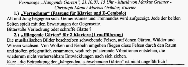 "Hängende Gärten" für zwei Klaviere (Uraufführung) und "Versuchung" in der Fassung für zwei Klaviere