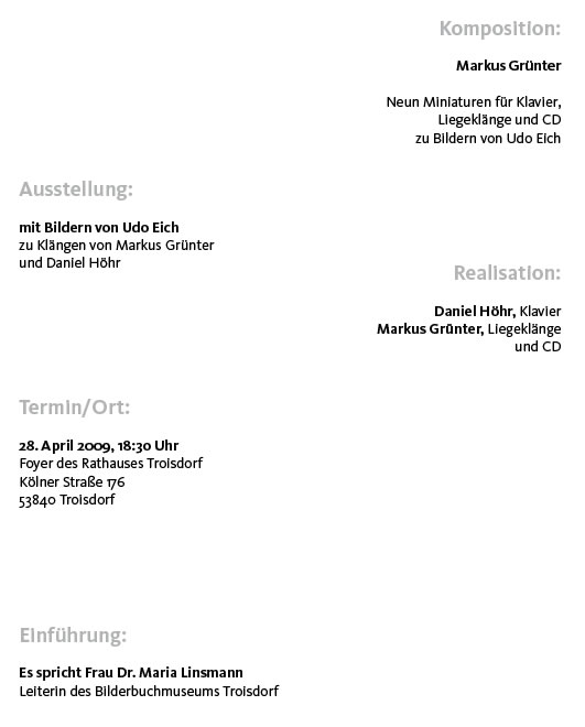 Uraufführung bei der Vernissage der Ausstellung mit Bildern von Udo Eich